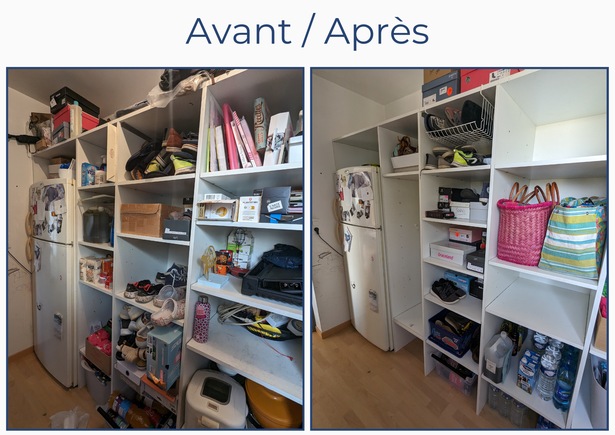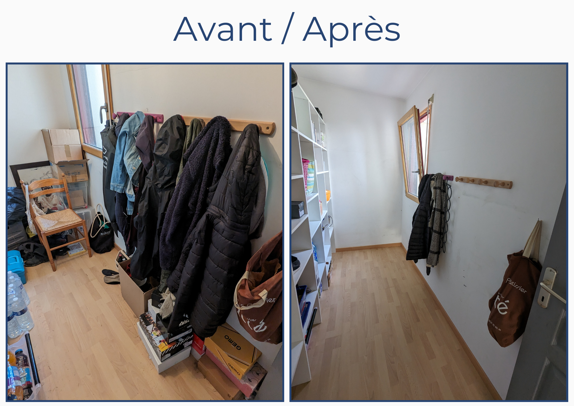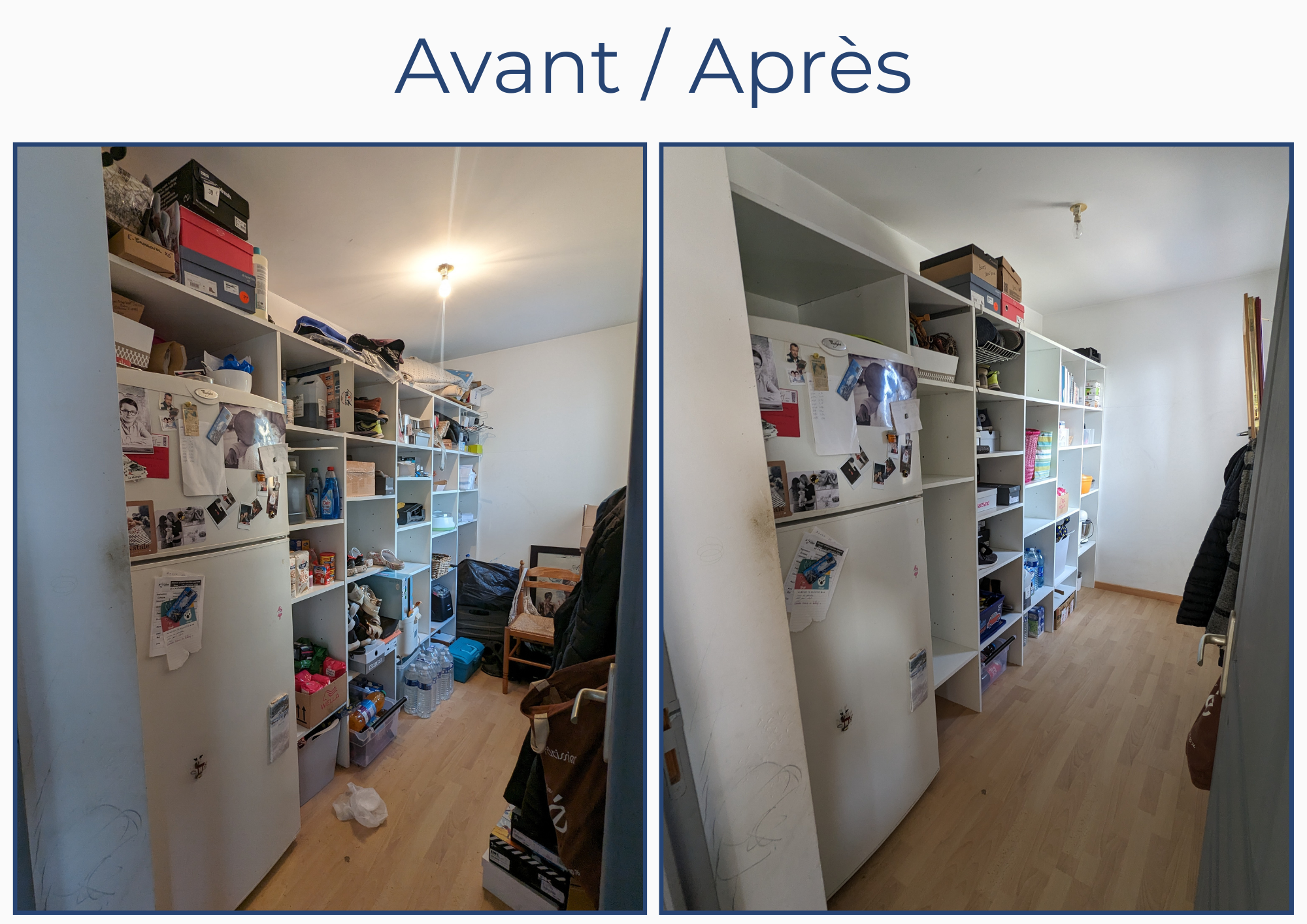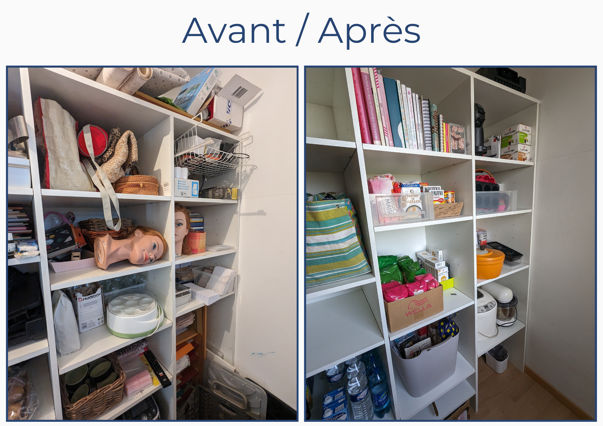 “ Efficacité est pour moi le mot clé. La pièce a retrouvé sa fonction initiale. Tout est à sa place. Beaucoup plus aérée, lumineuse et RANGÉE. Pour moi tout était au top, le matériel, le conseil et la bonne humeur. “