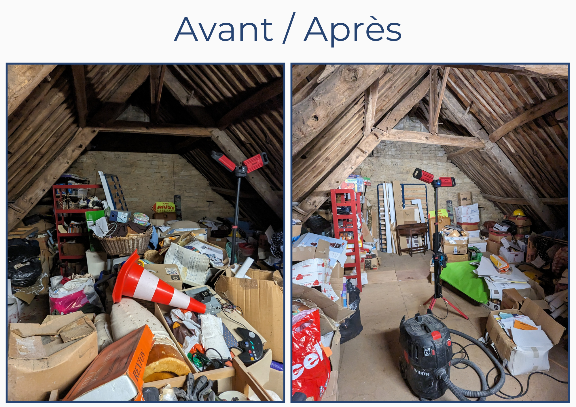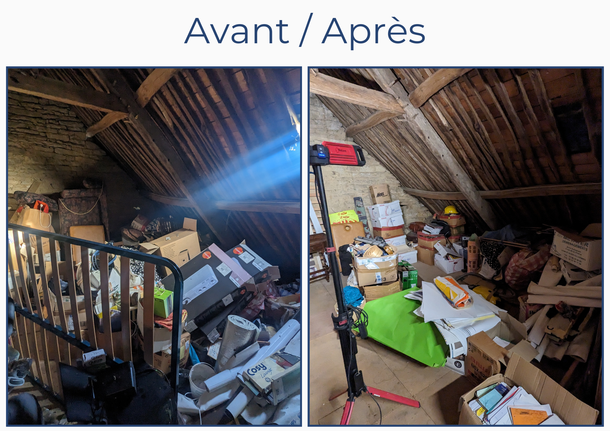 Mission : Commencer à désencombrer un grenier qui sert de stockage depuis 30 ans.